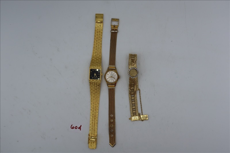 LOT, (1) IRWIN GOLD METAL WATCH & (2) GENEVE GOLD METAL WATCHES