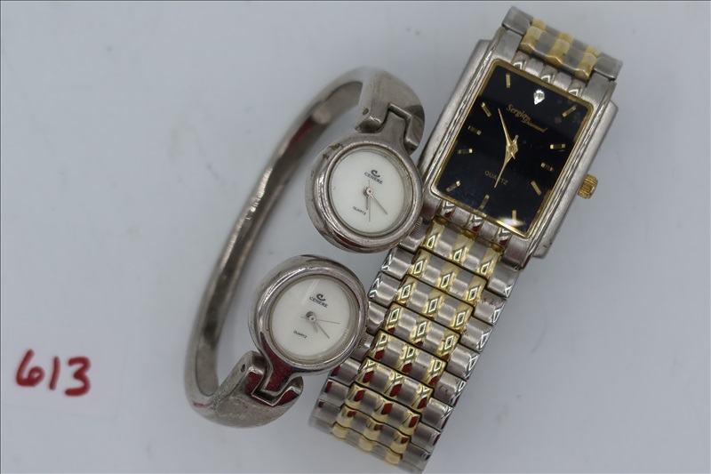 LOT, (1) SERGIO WHITE METAL WATCH & (1) CENEREWHITE METAL WATCH BRACELET WITH TWO FACES