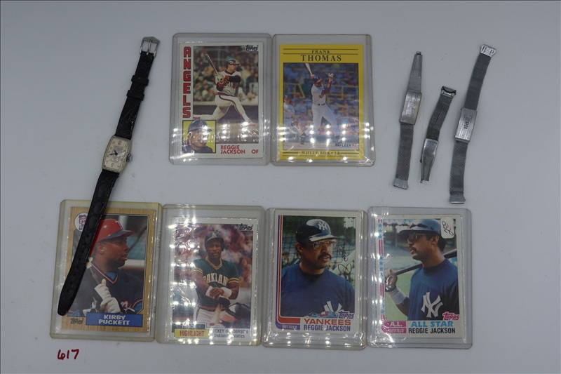 LOT, (1) GROEN WHITE METAL WATCH, (6) BASEBALL CARDS & (3) PIECES BROKEN JEWELRY PIECES