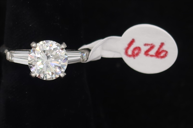 LOT, (1) WHITE METAL RING WITH CLEAR STONES SIZE: 6.5 (TESTS POSITIVE FOR DIAMONDS)