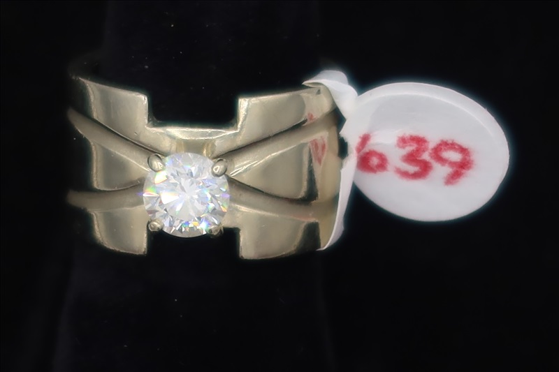 LOT, (1) WHITE METAL RING WITH CLEAR STONES, SIZE: 5.5 (TESTS POSITIVE FOR DIAMONDS)