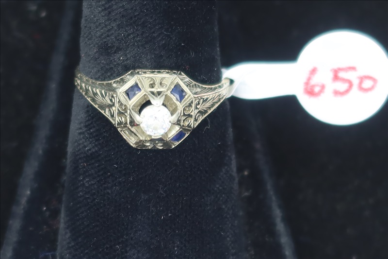 LOT, (1) WHITE METAL RING WITH CLEAR STONE, SIZE 7.75 (TESTS POSITIVE FOR DIAMOND)