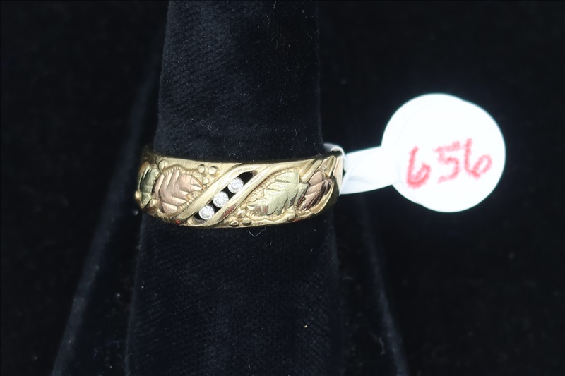 LOT, (1) YELLOW METAL RING WITH CLEAR STONES, SIZE: 8.25 (TESTS POSITIVE FOR DIAMONDS)