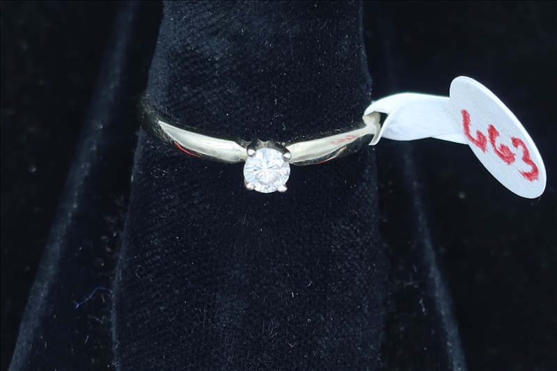 LOT, (1) YELLOW METAL RING WITH CLEAR STONE, SIZE: 9 (TESTS POSITIVE FOR DIAMOND)