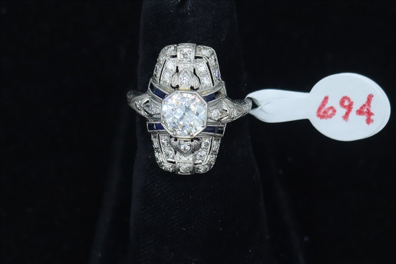 LOT, (1) WHITE METAL RING WITH CLEAR STONES. SIZE 5.5 (TESTS POSITIVE FOR DIAMONDS