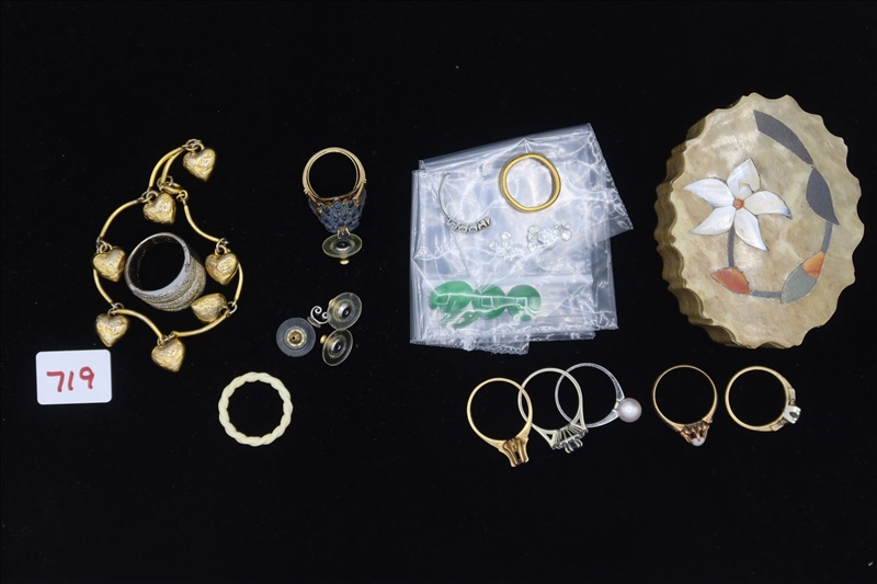 LOT, (9) RINGS, (1) SMALL BOX & ASSORTED JEWELRY