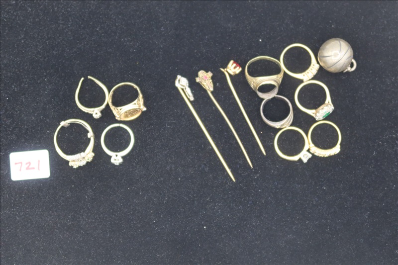 LOT, (10) ASSORTED RINGS, (1) PENDANT & (3) PINS