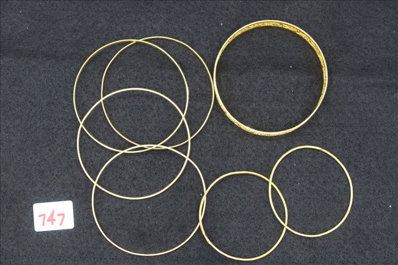 LOT, (7) ASSORTED YELLOW METAL BANGLES