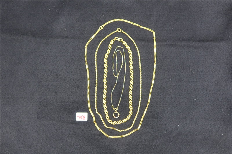LOT, (4) ASSORTED YELLOW METAL NECKLACES