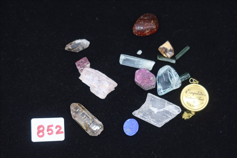 LOT, (1) YELLOW METAL CHARM PIECE, ASSORTED STONES