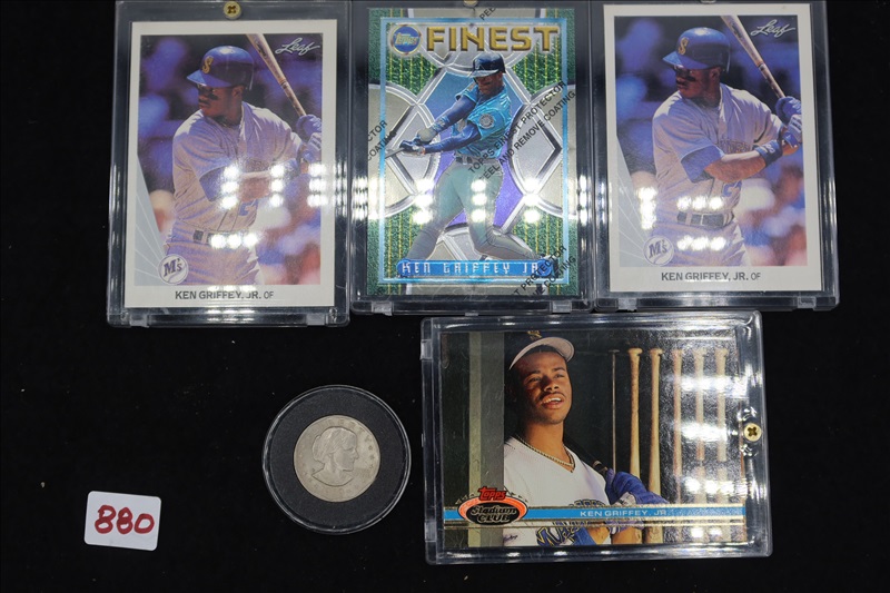 LOT, (4) KEN GRIFFEY, JR SPORT CARDS & (1) SUSAN B ANTHONY DOLLAR