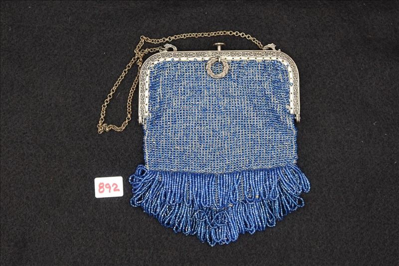 LOT, (1) BLUE BEADED HAND BAG