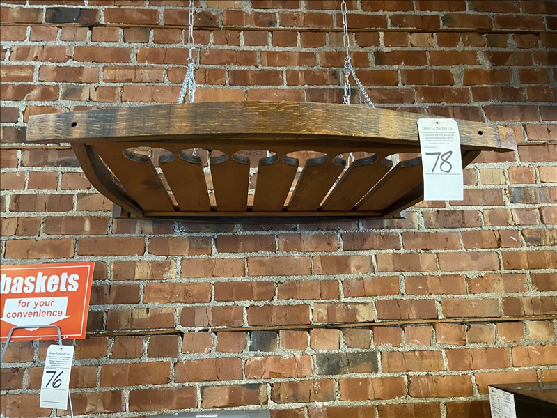 38"W X 27.5"D RECLAIMED WINE BARREL WOOD HANGING STEMMED GLASS RACK