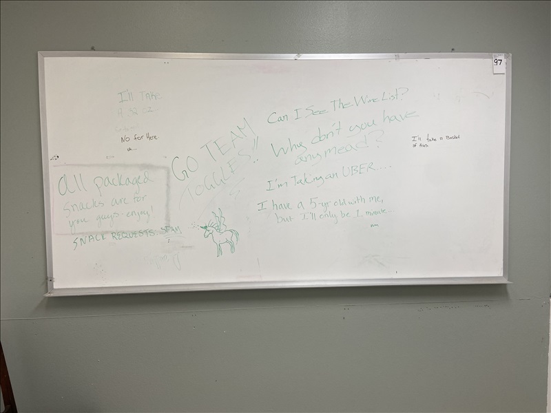 4' X 8' WALL MOUNTED WHITE BOARD (WILL NEED A STAR DRIVE BIT OR SCREWDRIVER TO REMOVE CAREFULLY)