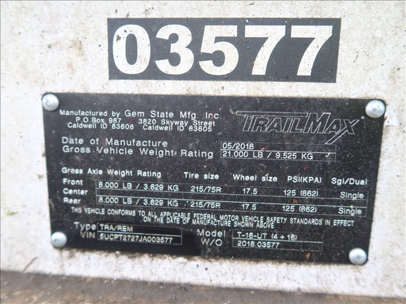 T/A, 20' 21,000 LB GVWR TILTBED EQUIPMENT TRAILER, 16'TILT +4' STATIONARY, TORSION SUSPENSION, ELECT BRAKES, 215/75R17.5