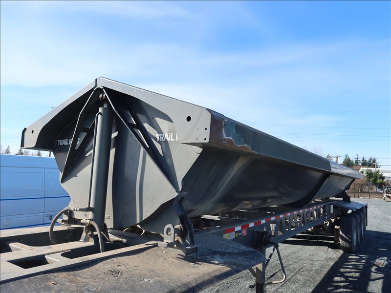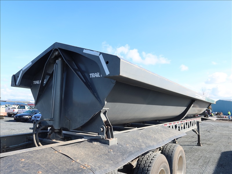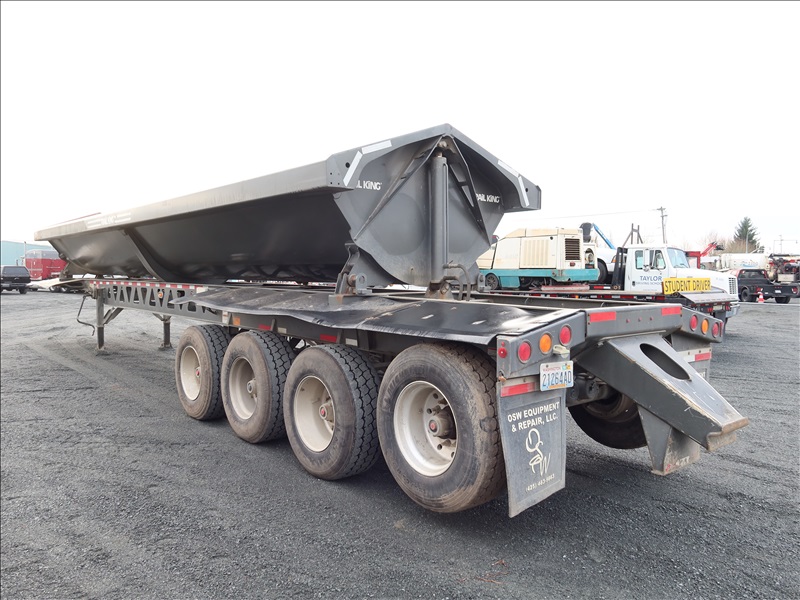 QUAD/A, 46' OAL, 78,990 LB GVWR SIDE DUMP TRAILER, 36' STEEL BOX, SPRING SUSPENSION, DROP AXLE, A/B, REAR PUSHER, 385/65R22.5