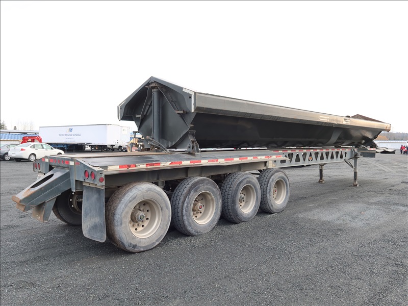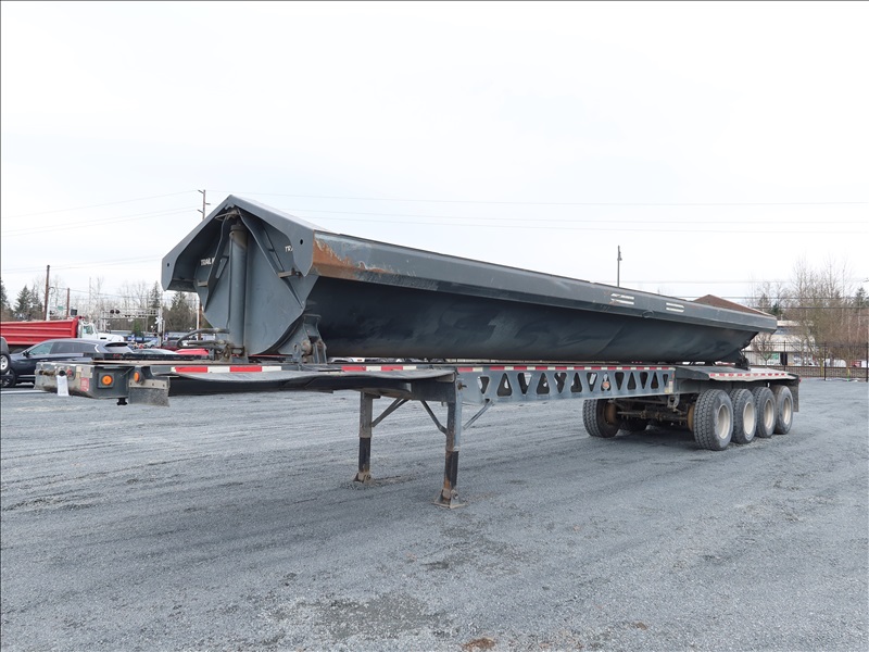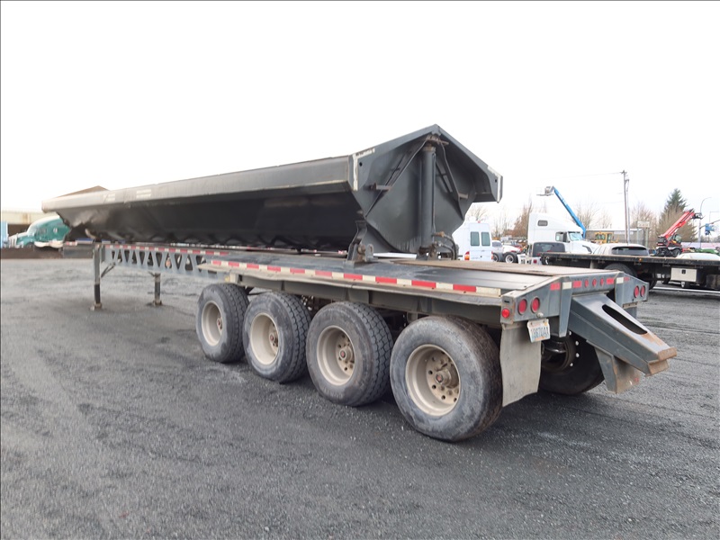 QUAD/A, 46' OAL, 81,140 LB GVWR SIDE DUMP TRAILER, 36' STEEL BOX, SPRING SUSPENSION, DROP AXLE, A/B, REAR PUSHER, 385/65R22.5