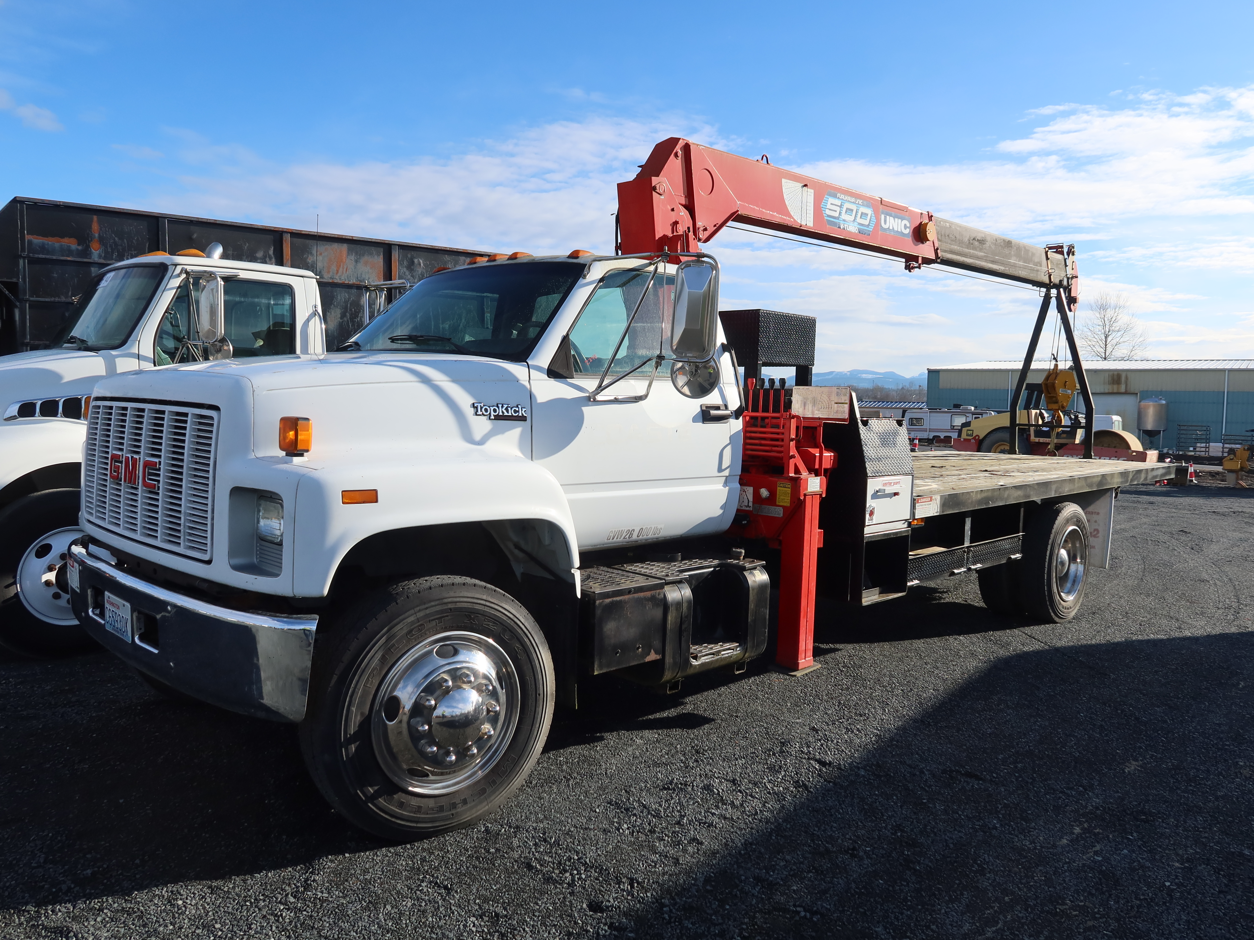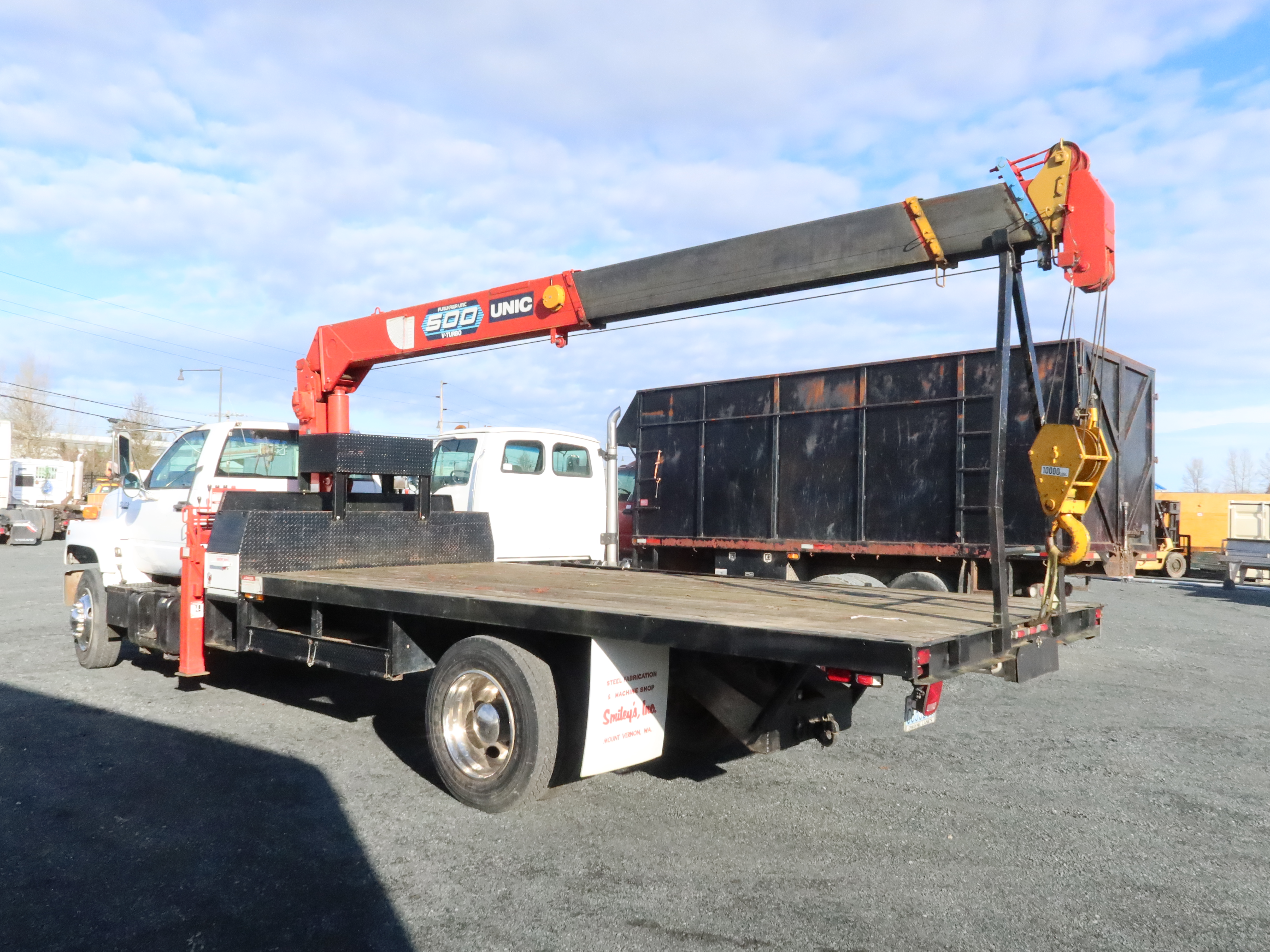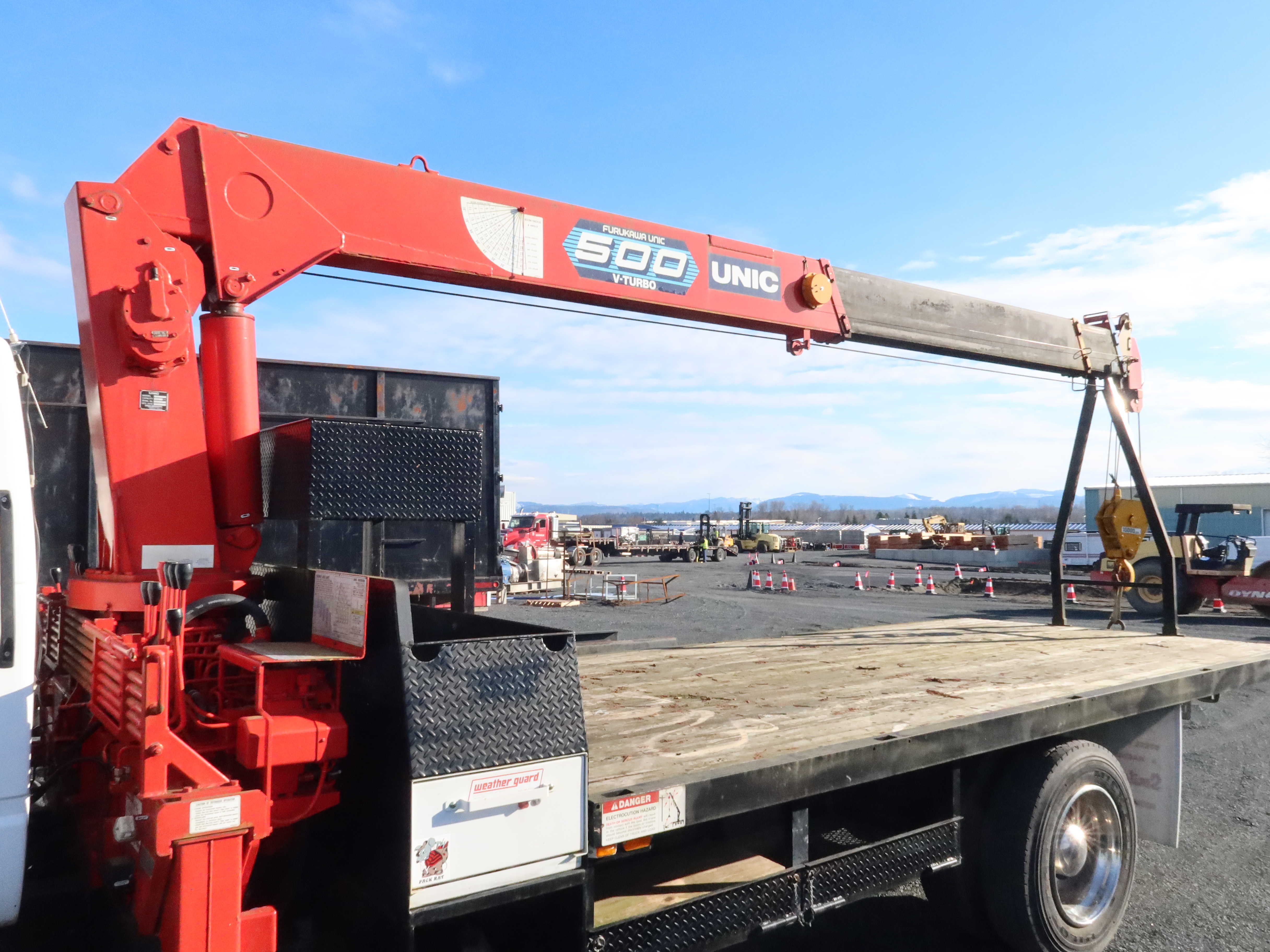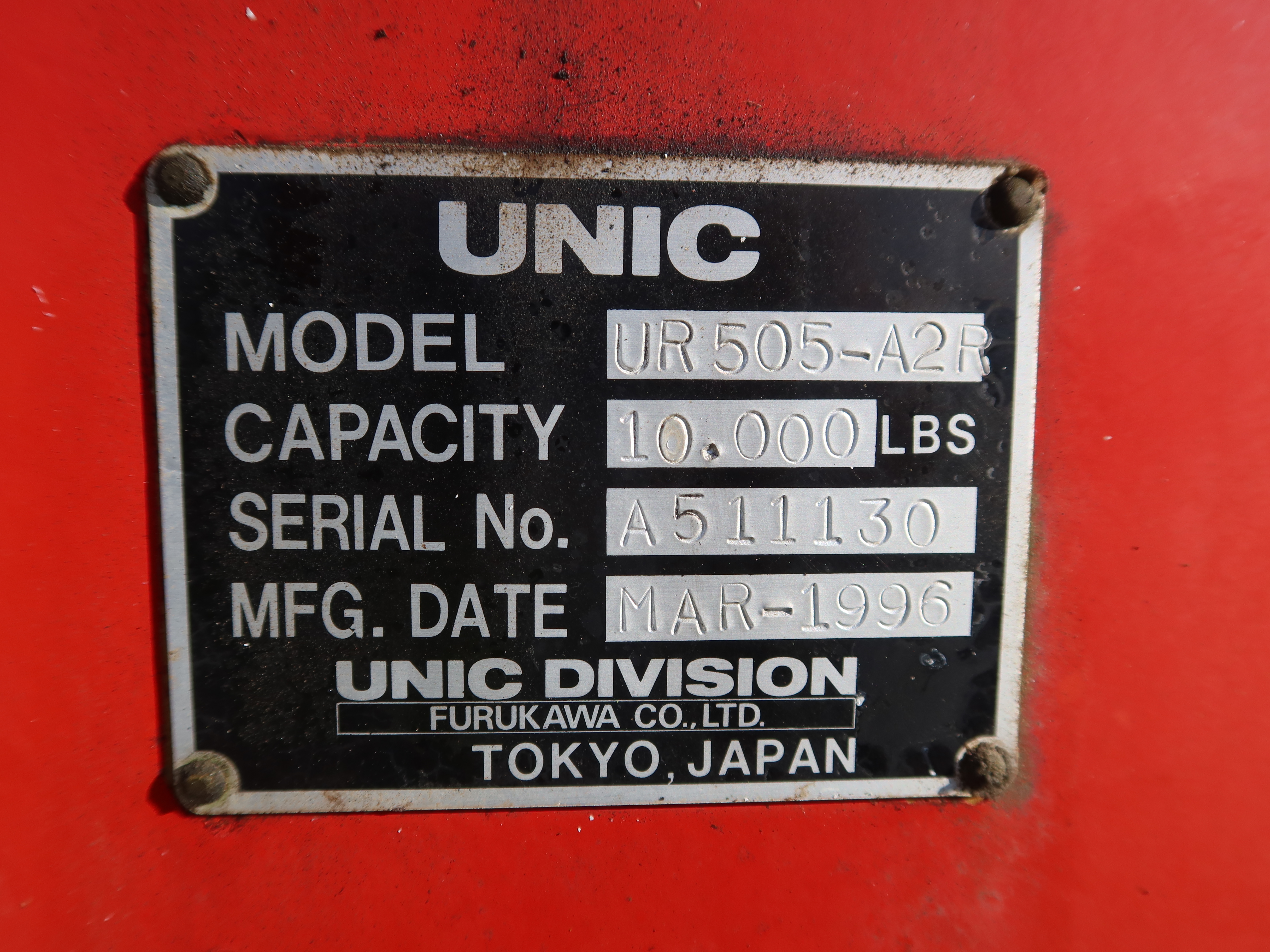 CRANE TRUCK, UNIC UR505-A2R, 10,000 LB/48.2, 5-SECTION BOOM, STABILIZERS, 17' FLATBED, 427 V8, AUTO