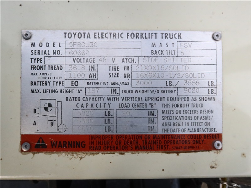 5,820 LB HRT FORKLIFT, 187" FORK HEIGHT, 3-STAGE MAST, SIDE SHIFT, ELECTRIC, CHARGER