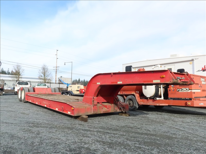T/A, 40' LOWBOY EQUIPMENT TRAILER, 20' MAIN DECK & 9' OVER AXLES, BEAM SUSPENSION, A/B, 11R24.5