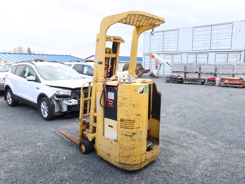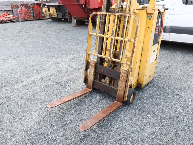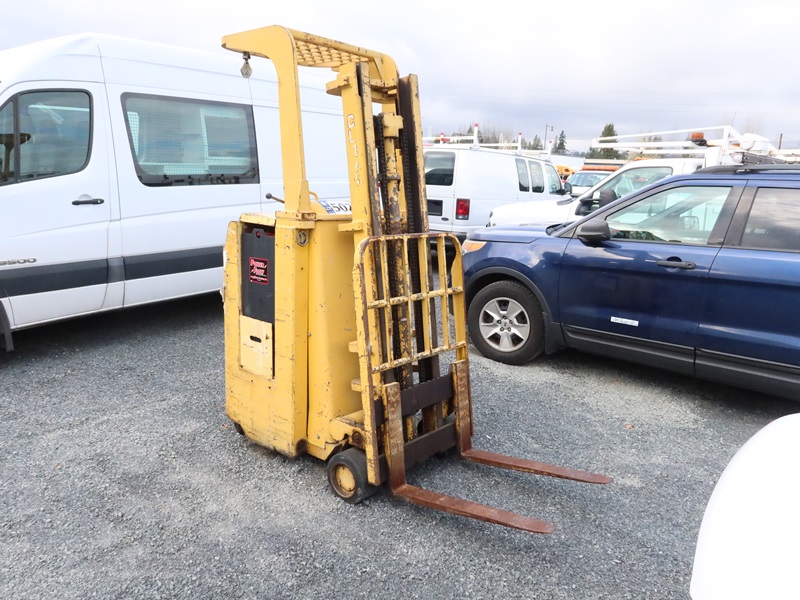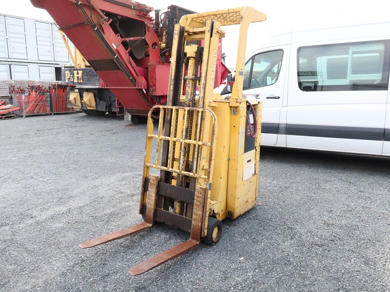 2,500 LB, 24V 130" LIFT HEIGHT STAND ON LIFT TRUCK (BATTERIES DEAD, CONDITION UNKNOWN, PLEASE PREVIEW)