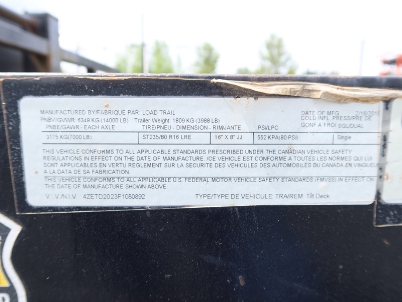 T/A, 21' X 82', 14,000 LB GVWR, TILTBED TRAILER, TORSION SUSPENSION, ELECT BRAKES, ST235/80R16