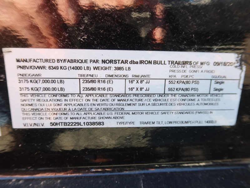 T/A, 21' X 83", 14,000 LB GVWR, TILTBED TRAILER, TORSION SUSPENSION, ELECT BRAKES, ST235/80R16