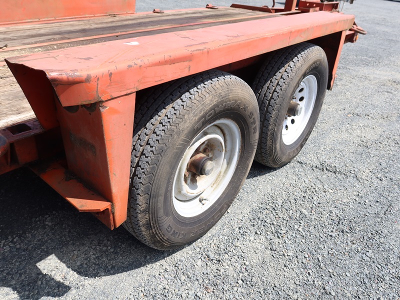 T/A, 16', 12,400 LB GVWR BEAVERTAIL EQUIPMENT TRAILER, 12' X 6'3" BED + 4' BEAVERTAIL FOLD DOWN RAMPS, ELECT BRAKES, 235/80R16