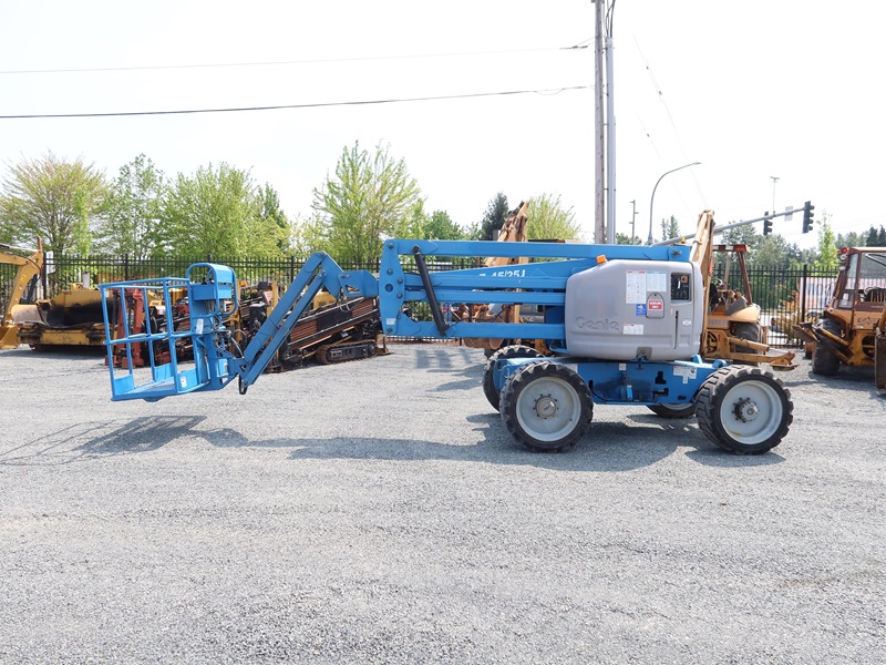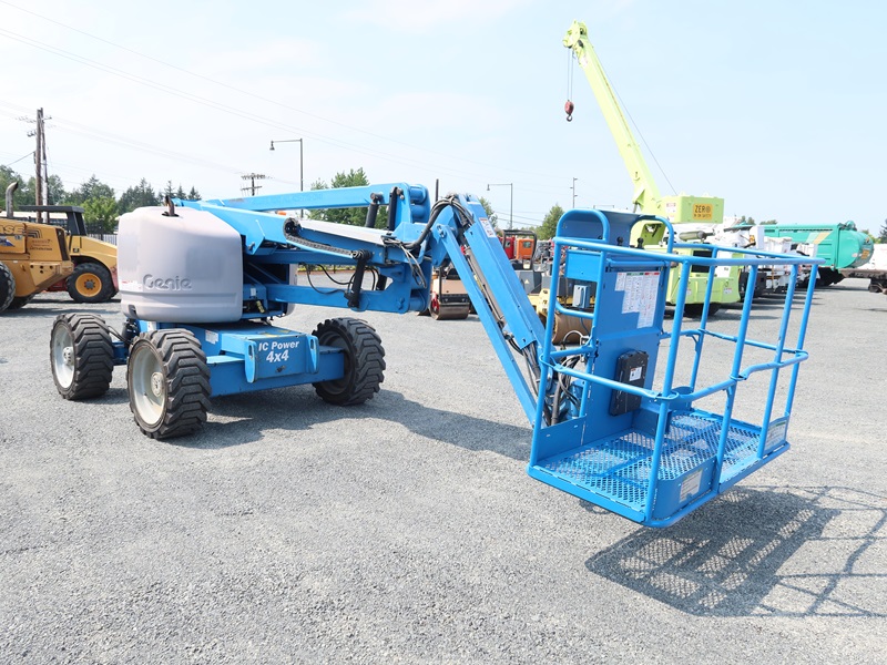 4X4 ARTICULATED BOOM LIFT, 51'6" WORKING HEIGHT, 24'8" HORIZONTAL REACH, 500 LB PLATFORM CAPACITY, 110V RECEPTACLE ON PLATFORM, 82 HP 4 CYL GAS/LPG