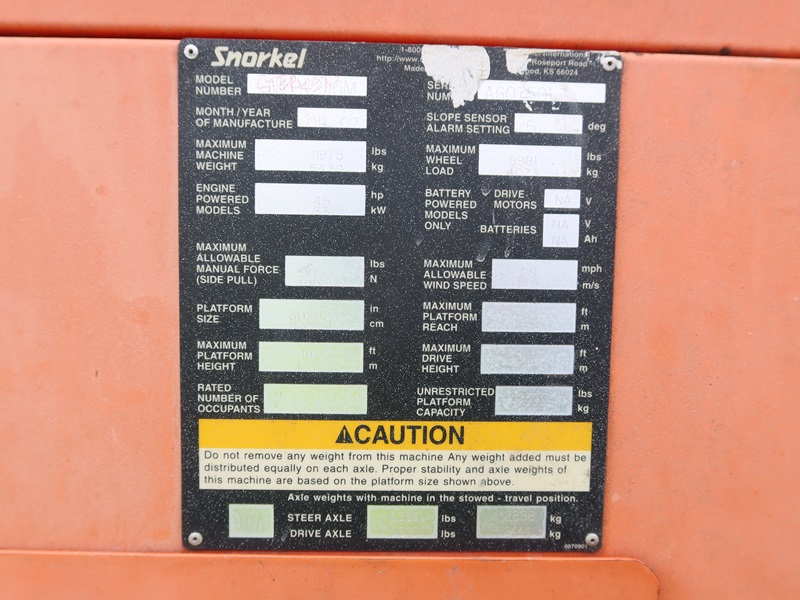 4X4 TELESCOPIC BOOM LIFT, 41' PLATFORM HEIGHT, 34' HORIZONTAL REACH, 500 LB CAP, 4 CYL GAS/LPG