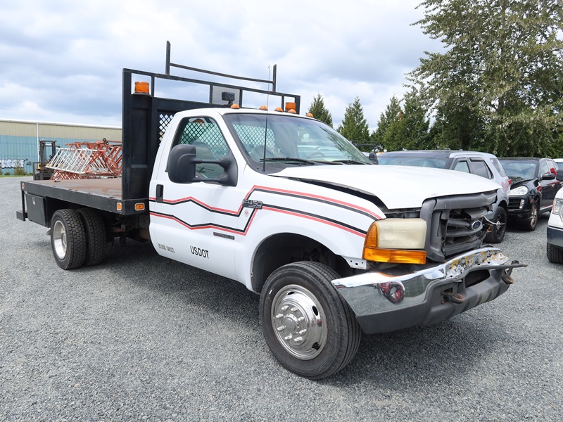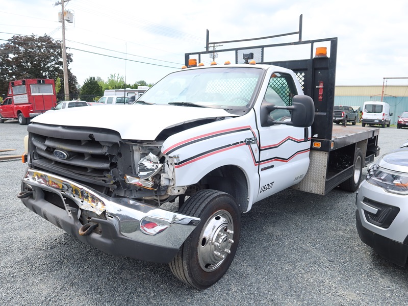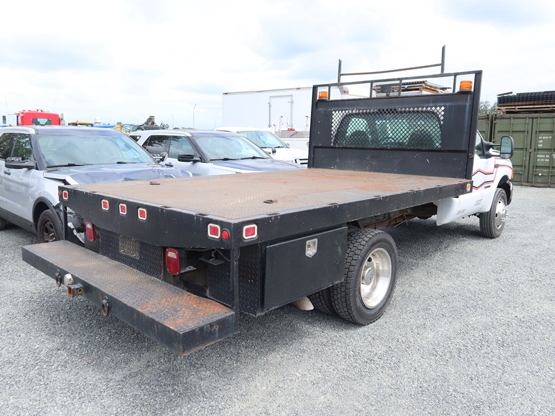 12' FLATBED, POWER STROKE DIESEL, AUTO, DRW (*BUYER NEEDS TO OBTAIN A CERTIFIED WEIGHT SLIP TO LICENSE VEHICLE, DOES NOT RUN, ACCIDENT DAMAGE, PLEASE PREVIEW)
