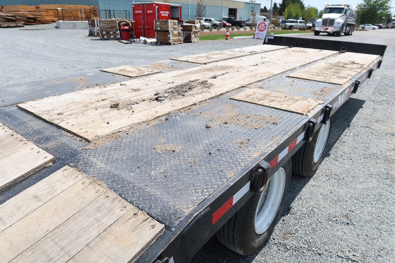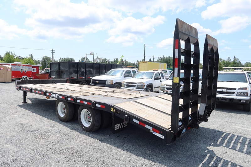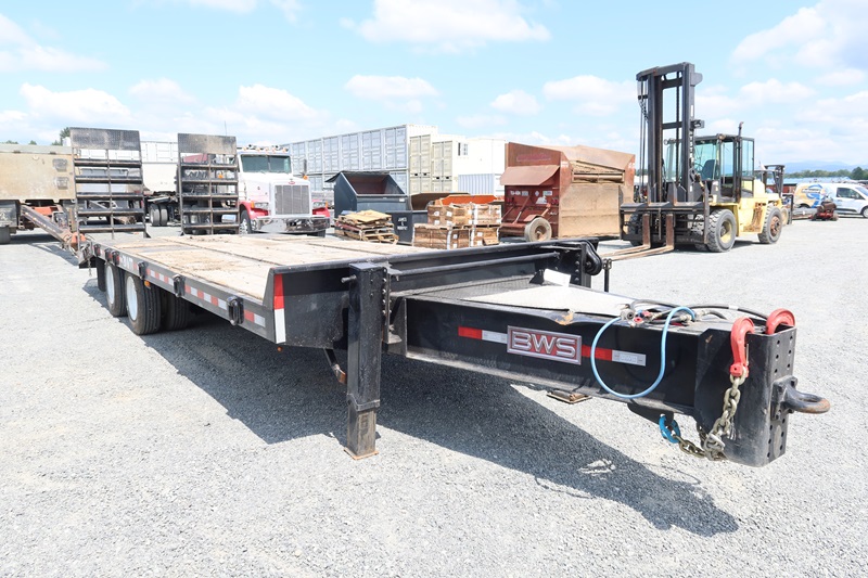 T/A, 25', 51,000 LB GVWR EQUIPMENT TRAILER, 20' MAIN DECK + 5' BEAVERTAIL SPRING SUSPENSION, A/B, FOLD DOWN RAMPS (BROKEN GLADHAND ON AIR LINE)