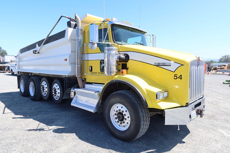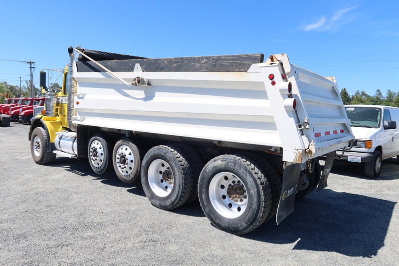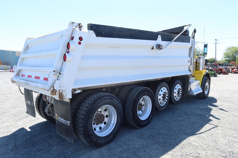 QUAD/A DUMP TRUCK, 17' DUMP TRUCK, 17' STEEL BOX, TARP SYSTEM, 550 HP CUMMINS ISX15, 18 SPD, CHALMERS SUSPENSION, 235" W/B, 20,000 LB FRONT, 46,000 LB REARS, 4.10 RATIO, (2) DROP AXLES, PLUMBED FOR PUP