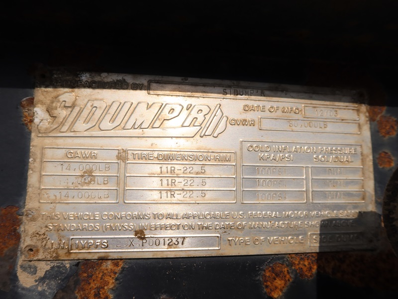 TRI/A, 44', 80,000 LB GVWR SIDE DUMP TRAILER, 37' STEEL BOX, AIR SUSPENSION, A/B, 425/65R22-5