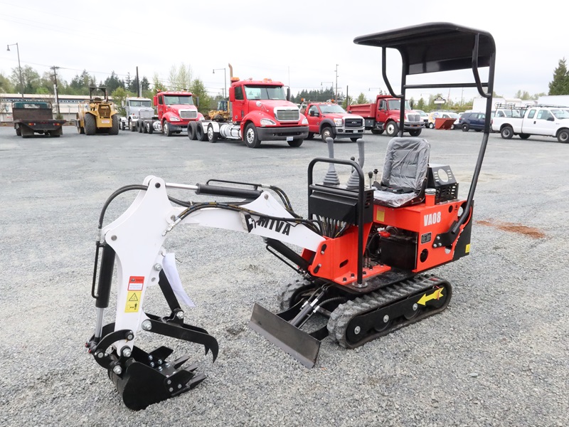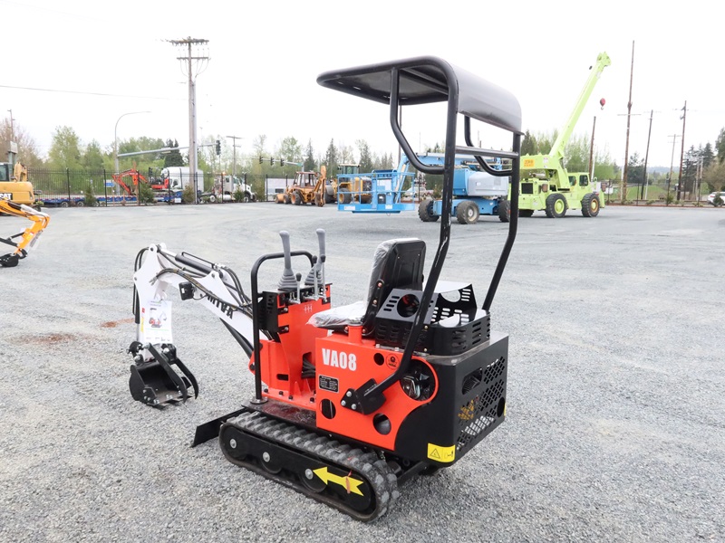 MINI EXCAVATOR, 13.5 HP BRIGGS & STRATTON XR, FIXED THUMB, AUX HYD, 10" BUCKET, BLADE, RUBBER TRACKS, CANOPY