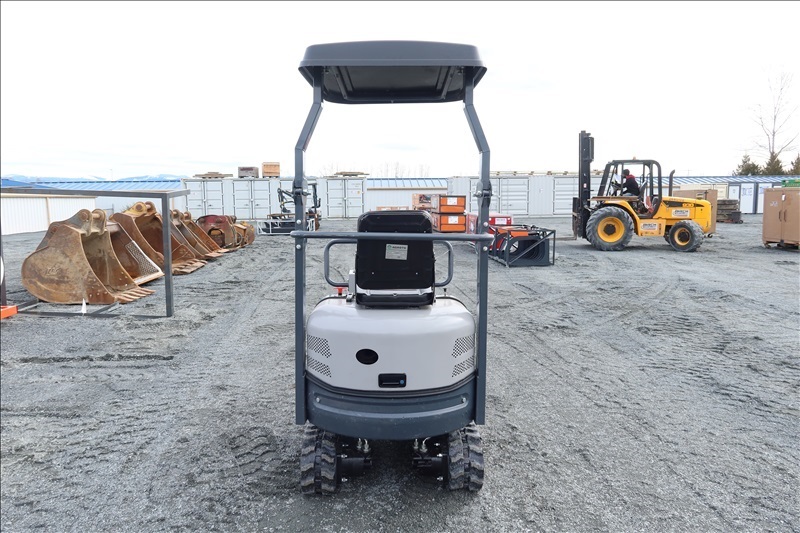 MINI EXCAVATOR, BRIGGS & STRATTON XR, 1 CYL, FIXED THUMB, AUX HYD, 14" BUCKET, BLADE, RUBBER TRACKS, CANOPY (UNUSED, HOUR METER MALFUNCTION)