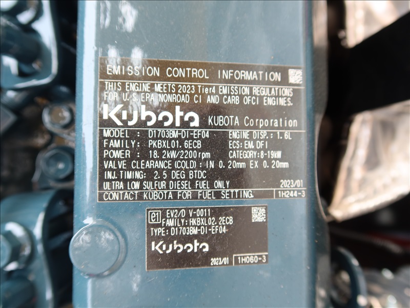 MINI EXCAVATOR, 24.4 HP KUBOTA D1703BM, SWING BOOM, AUX HYD, 19" BUCKET, BLADE, RUBBER TRACKS, CAB