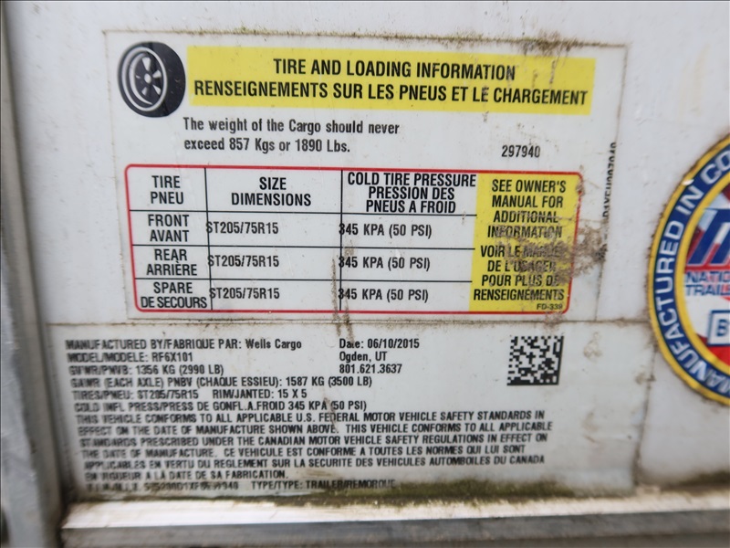 S/A, 10' X 6', 2,990 LB GVWR ENCLOSED TRAILER, TORSION SUSPENSION, BARN DOORS, SIDE DOOR, 205/75R15
