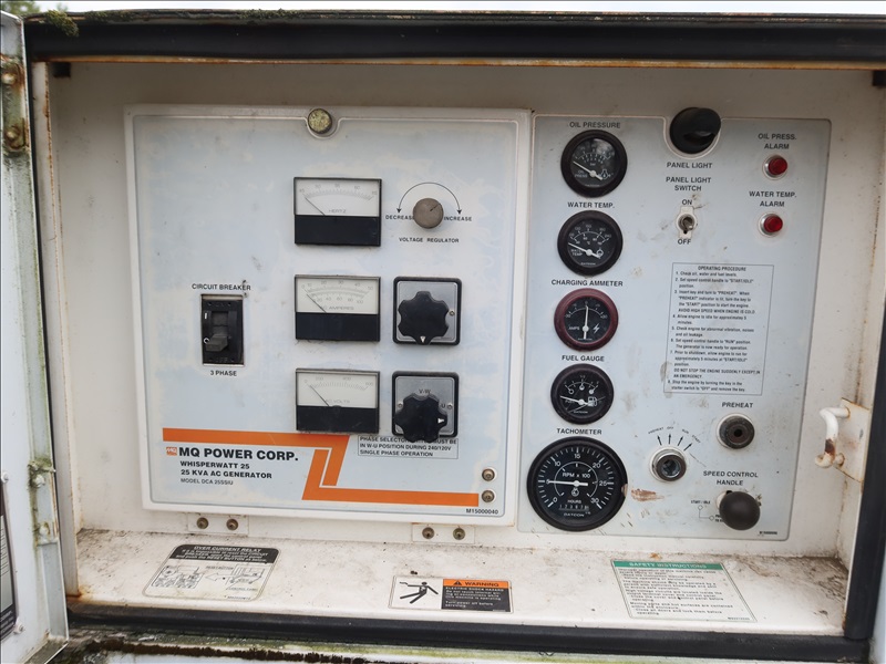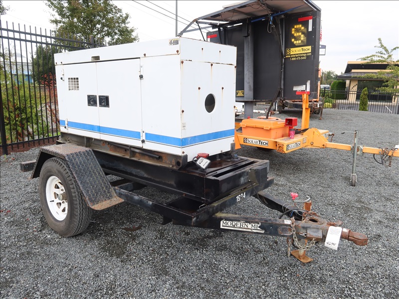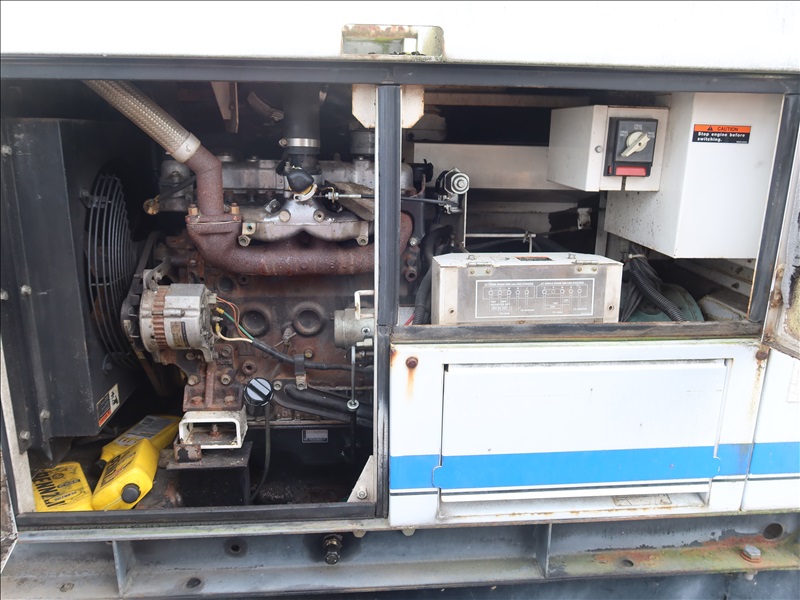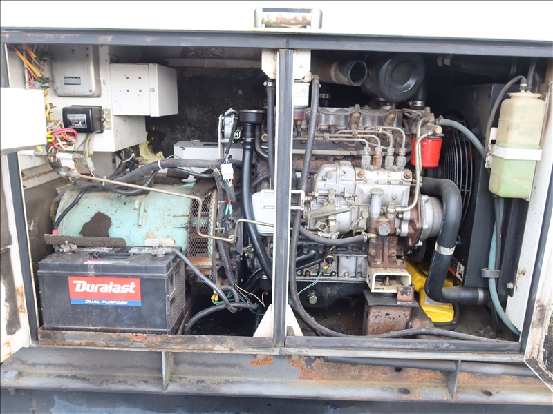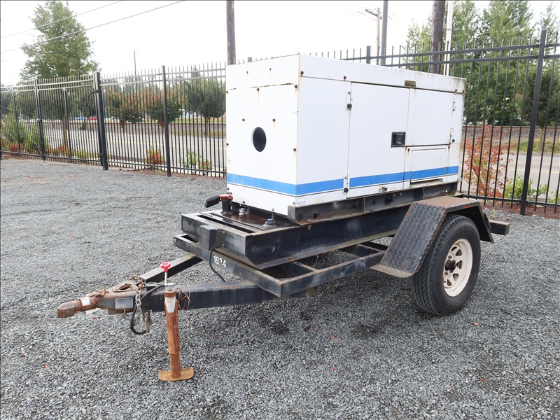 S/A, WHISPERWATT DCA-25SSIU 25 KVA TRAILER MOUNTED GENERATOR, ISUZU 4 CYL DIESEL ENGINE, 120/240/480V, SINGLE OR 3 PHASE, ELECT BRAKES, 7.00-15 (IGNITION BROKEN, STARTS, NO KEY)