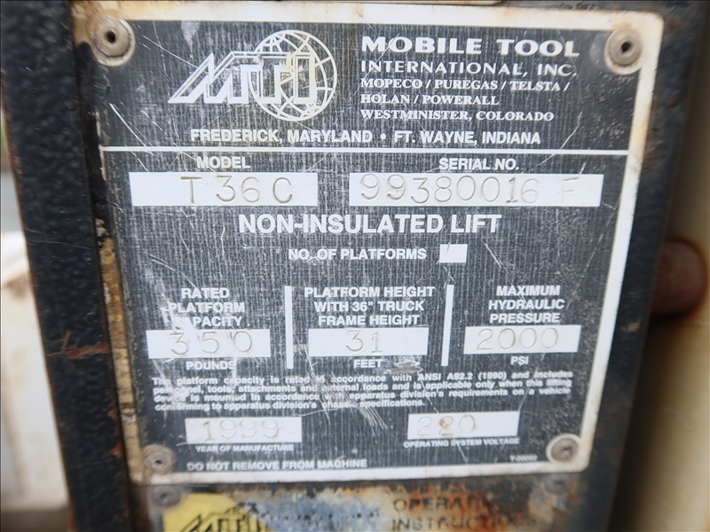 BUCKET TRUCK, MTI T36C, 31', 350 LB, AUX ONAN GEN SET, HOSE REEL LIFT, VT365, AUTO, A/B