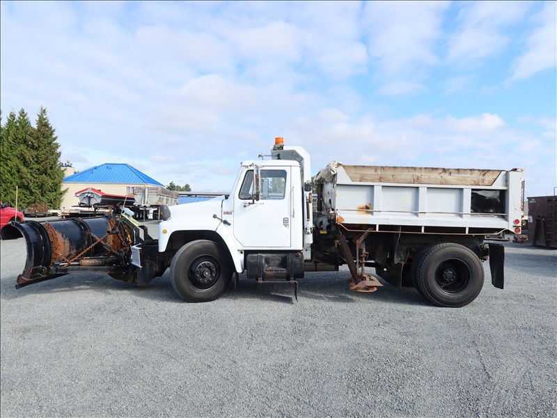 DUMP TRUCK, 10' STEEL BOX, 10' SNOWPLOW, SAND SPREADER, DT466, 10 SPD, SPRING SUSPENSION, 164" W/B, A/B