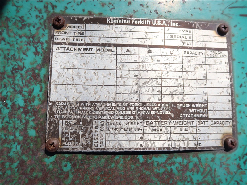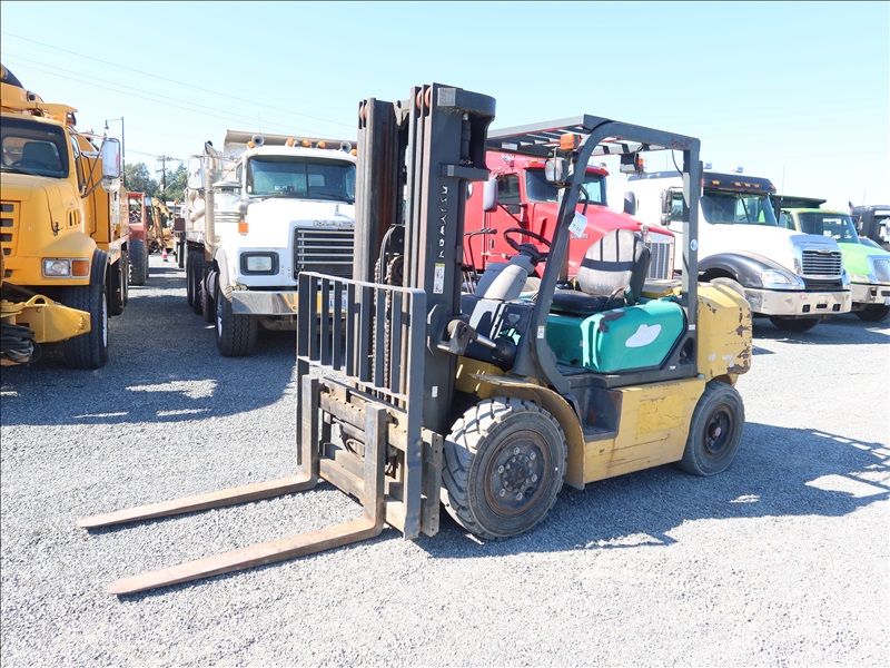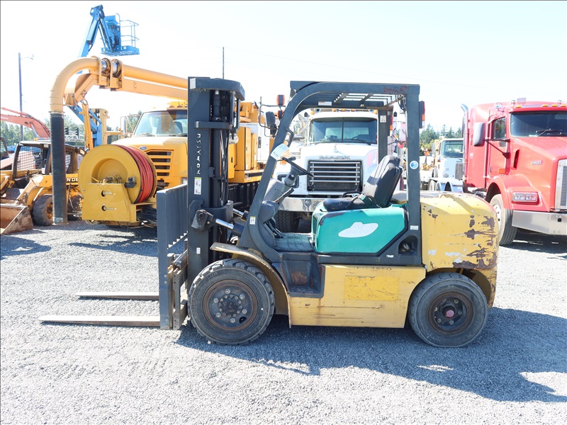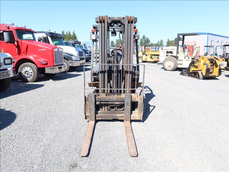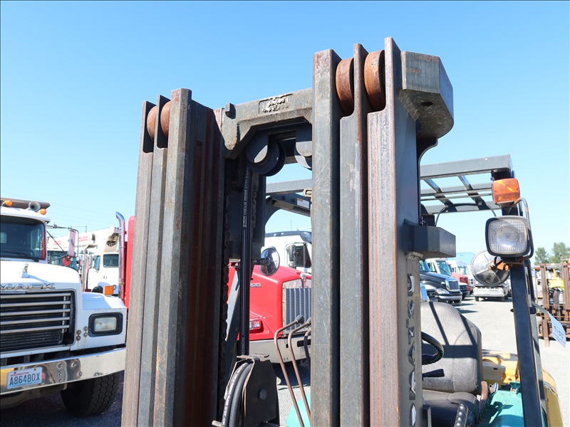 7,060 LB PNEUMATIC TIRE FORKLIFT, 185" FORK HEIGHT, 3-STAGE MAST, SIDE SHIFT, S601D2E-2, CANOPY