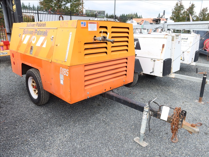 S/A, 185 CFM TRAILER MOUNTED AIR COMPRESSOR, CAT 4 CYL DIESEL ENGINE, 205/75D15 (*INOPERABLE, WATER IN OIL, RUNS & OPERATES, POSSIBLE HEAD GASKET, PLEASE PREVIEW)