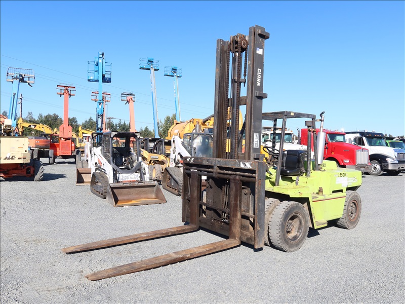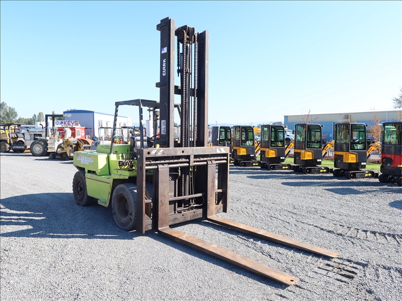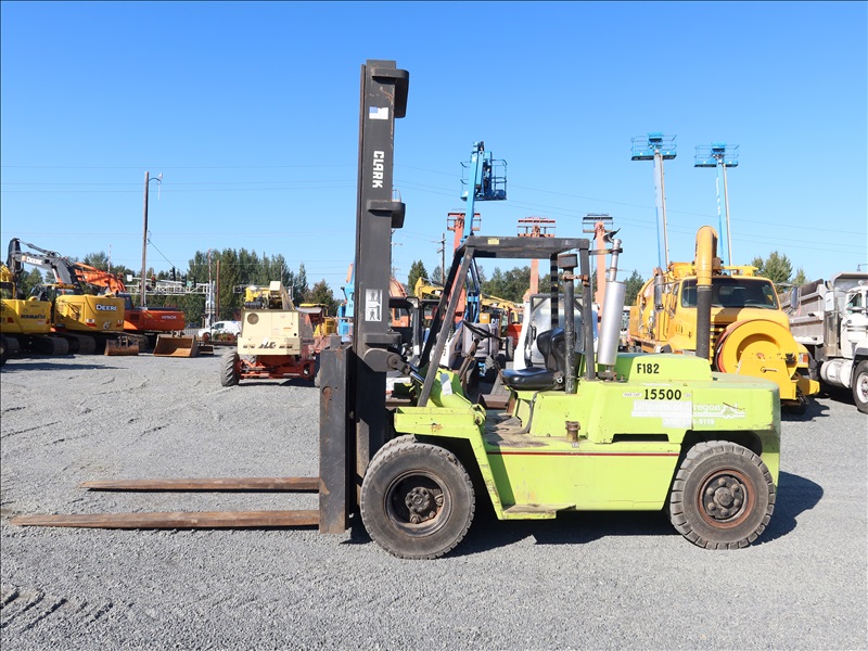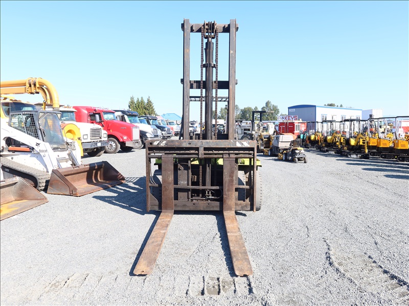 14,350 LB DUAL CUSHION TIRE FORKLIFT, 210" FORK HEIGHT, 2-STAGE MAST, SIDE SHIFT, 4 CYL DIESEL