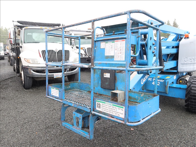 2WD ARTICULATED BOOM LIFT, 45'6" PLATFORM HEIGHT, 25' REACH, 500 LB CAP, 110V RECEPTACLE ON PLATFORM, 4 CYL LPG