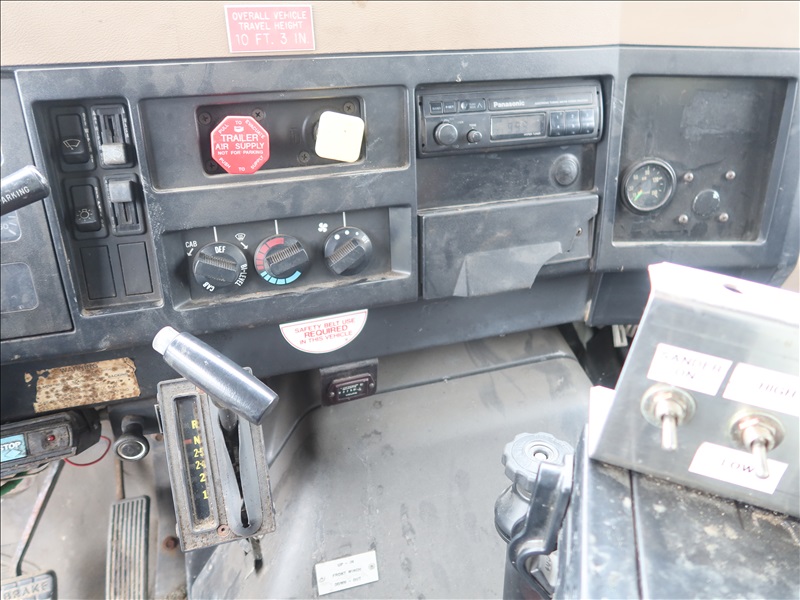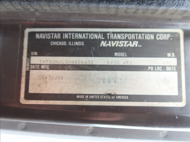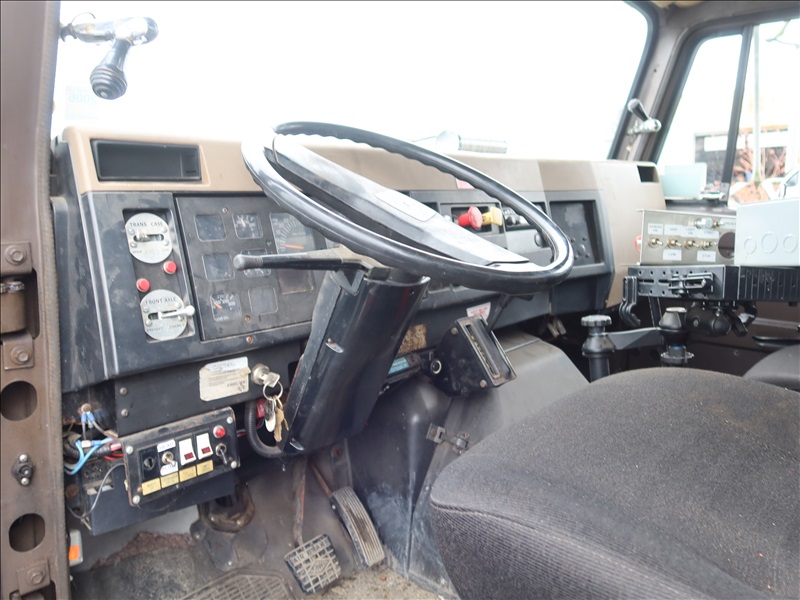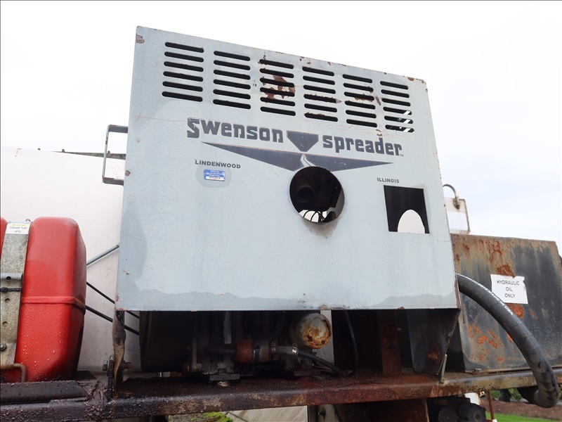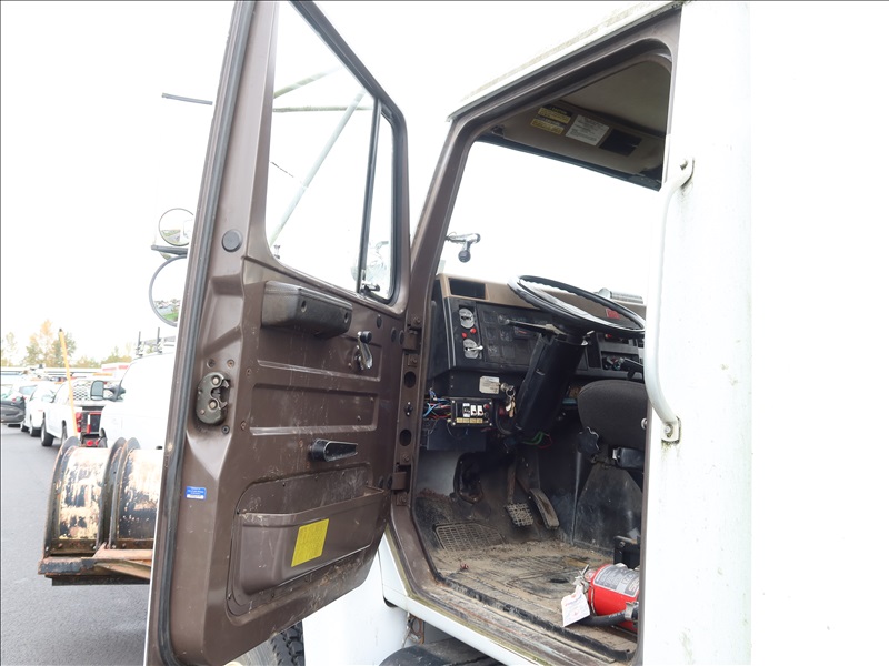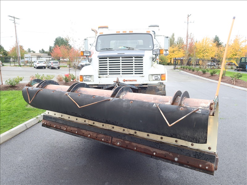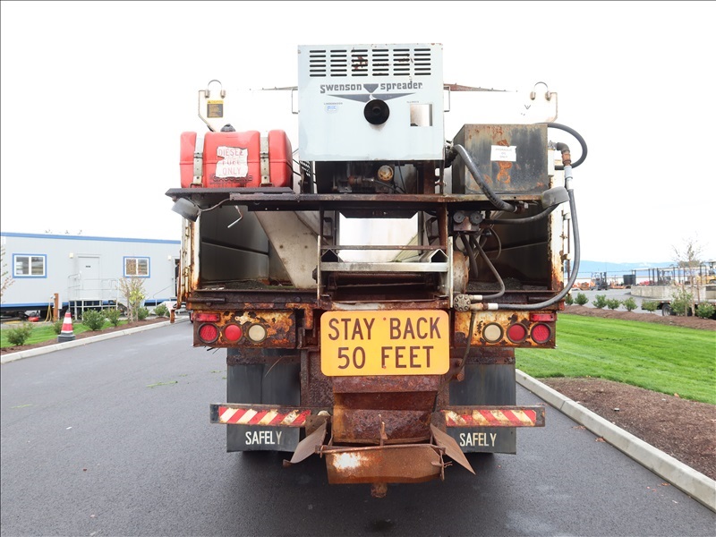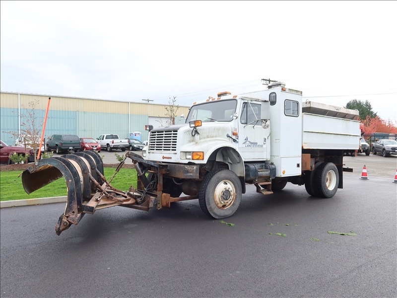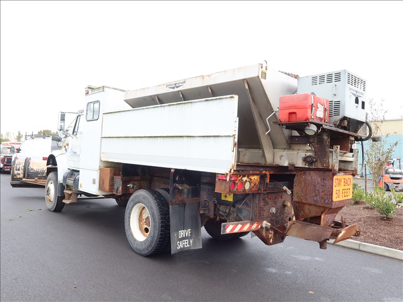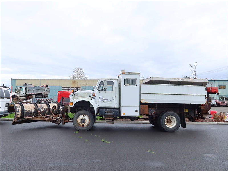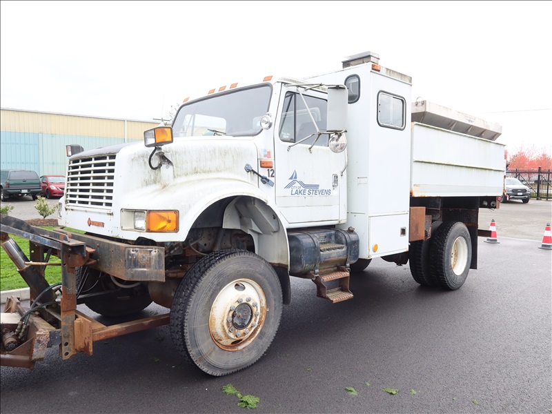 DUMP TRUCK, 10' STEEL BOX, DT466, AUTO, SWENSON SPREADER, 10' SNOW PLOW (DUMP HOIST DISABLED, WELDED TO FRAME, CONSIGNOR DISCLOSURE: STARTER SOLENOID STICKS, MAY NEED TO JUMP FROM SOLENOID)