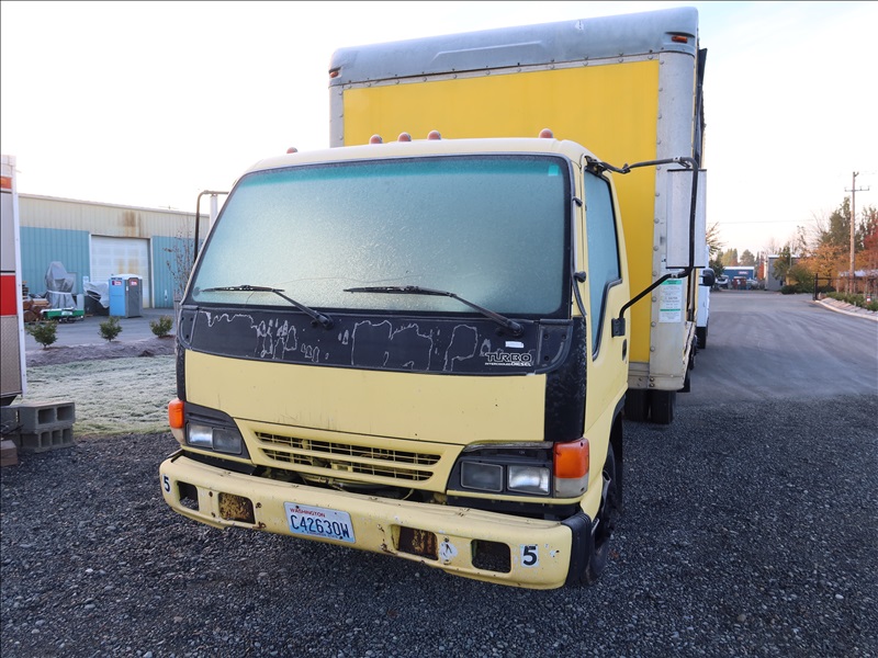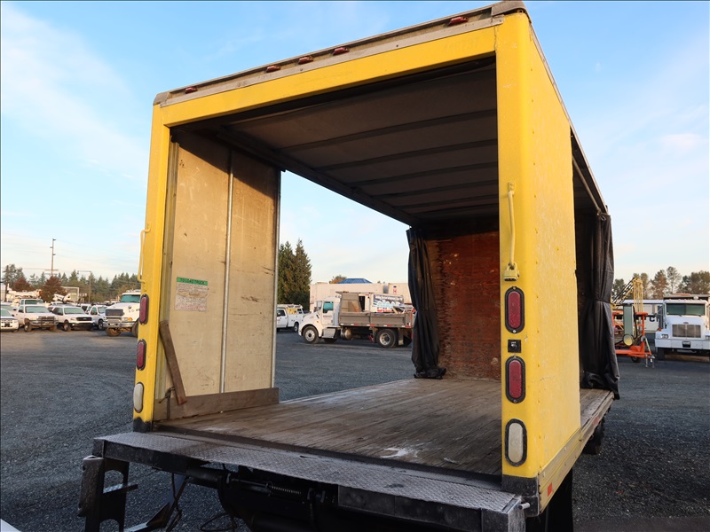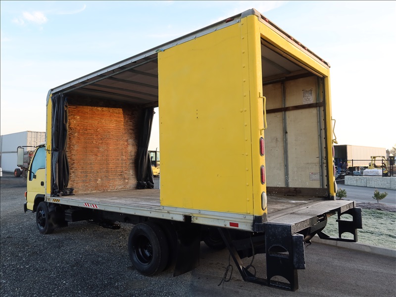 16' CURTAIN TRUCK, 4 CYL DIESEL, AUTO, LIFTGATE (ENGINE RUNS POOR, EXCESSIVE OIL LEAK)