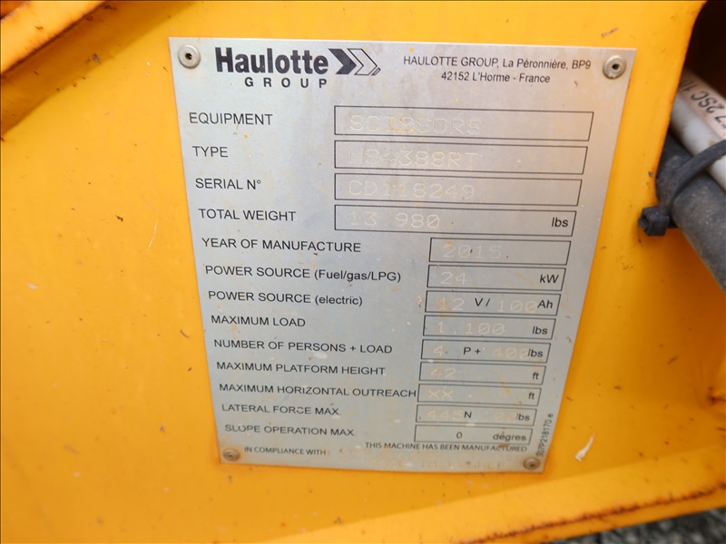 4WD ROUGH TERRAIN SCISSOR LIFT, 42'8" PLATFORM HEIGHT, 1,103 LB CAPACITY 110V RECEPTICAL AT PLATFORM, HATZ 2L41C