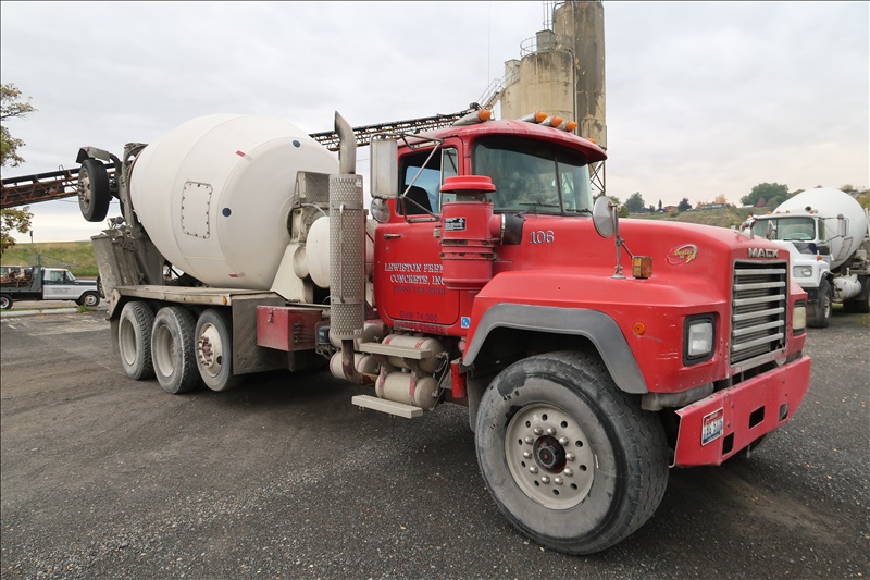 QUAD AXLE MIXER TRUCK, EM7-300, 9LL, TMMB 11 CU. YD. HYDRAULIC MIXER, DROP AXLE, STRONG ARM SINGLE AXLE BOOSTER, WATER SYSTEM, 38,000 REARS, 20,000 FRONT (UNIT #108)