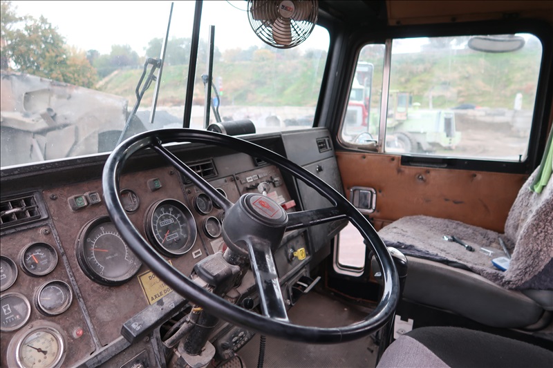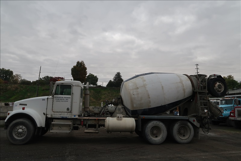 TRI-AXLE MIXER TRUCK, CAT 3306, 7LL, TMMB 10-1/2 CU. YD. HYDRAULIC MIXER, SQR100 REARS W/5.29 RATIO, 20,000 FRONT, BEAM SUSPENSION, STRONG ARM SINGLE AXLE BOOSTER, WATER SYSTEM (UNIT #99)